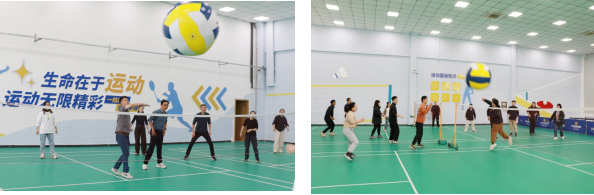 超級大排球:掌上對決,燃動全場。作為壓軸項目,超級大排球在員工活動室內(nèi)掀起熱潮。球網(wǎng)前你來我往,定制巨型排球在空中劃出飄逸弧線。發(fā)球、墊球、扣殺……每一次精彩回合都引發(fā)陣陣驚呼。團隊配合的默契、永不言棄的堅持,讓這場“掌上的對決”成為全場矚目的焦點。