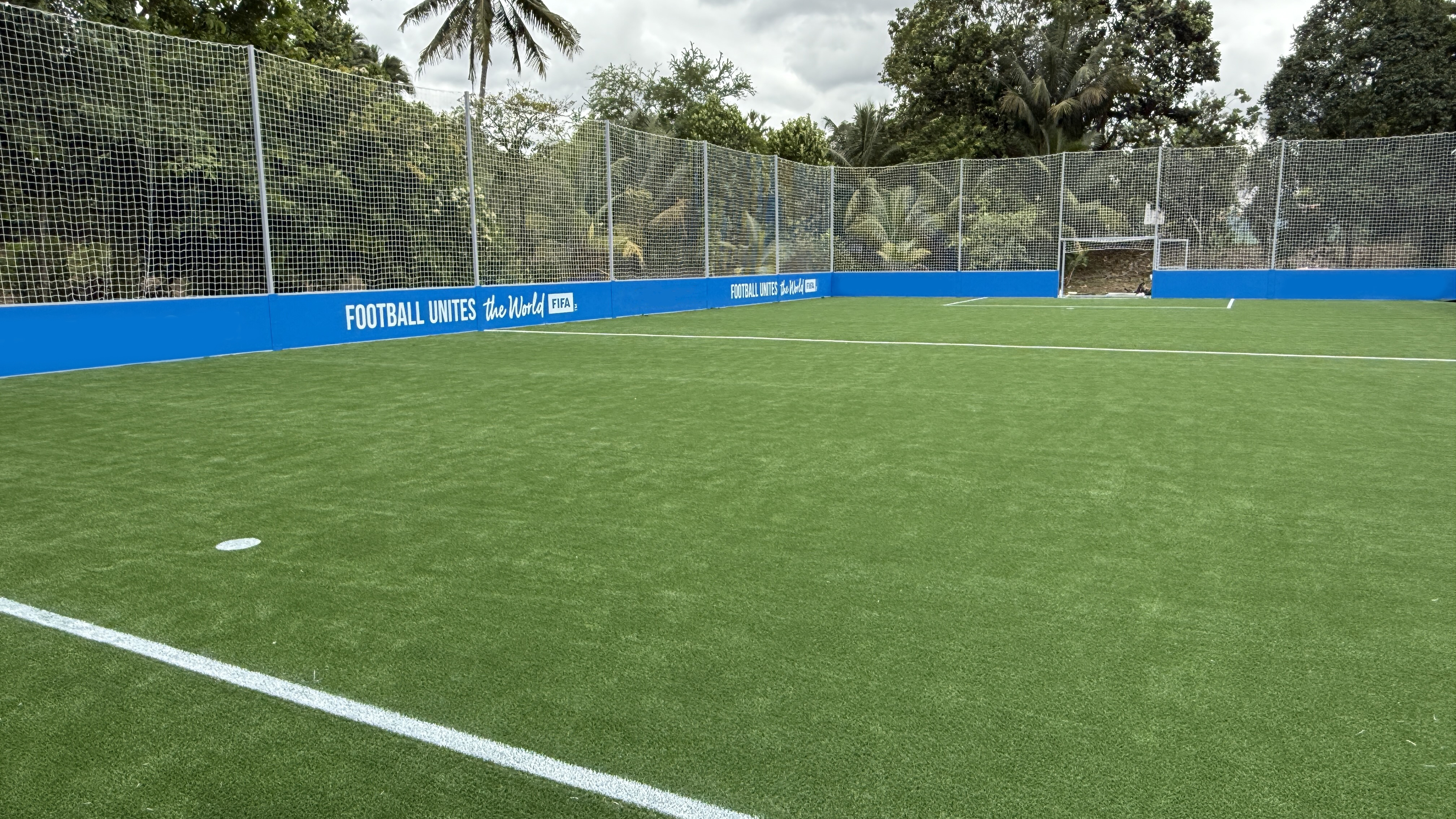 直到10月26日清晨,當(dāng)國際足聯(lián)FIFA主席詹尼·因凡蒂諾親手揭開新落成的足球場幕布,一片嶄新的翠綠躍入眼簾。學(xué)校足球隊(duì)的孩子們歡呼雀躍,踩在由共創(chuàng)草坪提供的最新Leap無填充鋪就的人造草坪上,腳感舒適非凡,褲腳不再沾泥,笑聲撞碎了雨季的陰霾。